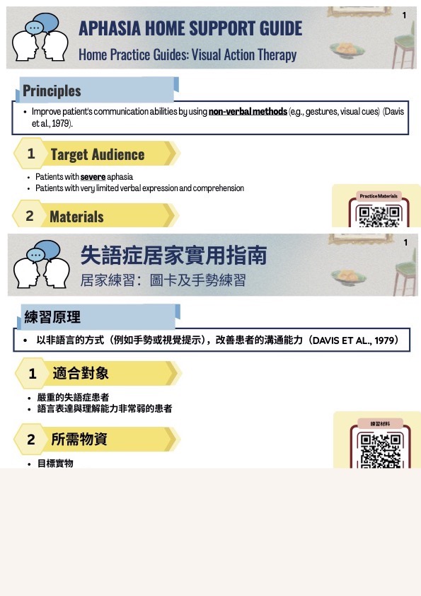 本指南介紹圖卡及手勢練習,一種為嚴重失語症患者設計的方法。它從物件與圖片配對,進展到產出代表這些物件的動作,為功能性溝通建立基礎。